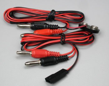 These Hobbico Charge Leads Make it Easy to Use the / Hobbico R/C Multi-Charger, AccuCycles, or the Scale Voltmeter. / / FEATURES: Includes Both Transmitter and Receiver Leads w/Banana Plugs. These / Plug Directly Into Charging Outlets (no soldering, crimping or / splicing plugs onto wires). / Plugs for All Futaba J Radios (but NOT for 9VAP/VHP,use HCAP0102 ) / with a 9 volt connector!!!! / Will Work with Other Brands of Chargers or Voltmeters Using Banana / Plug Outputs. / / INCLUDES: One 1 Meter (39.37"") Transmitter Charge Cord w/Banana Plugs / One 1 Meter (39.37"") Receiver Charge Cord w/Banana Plugs